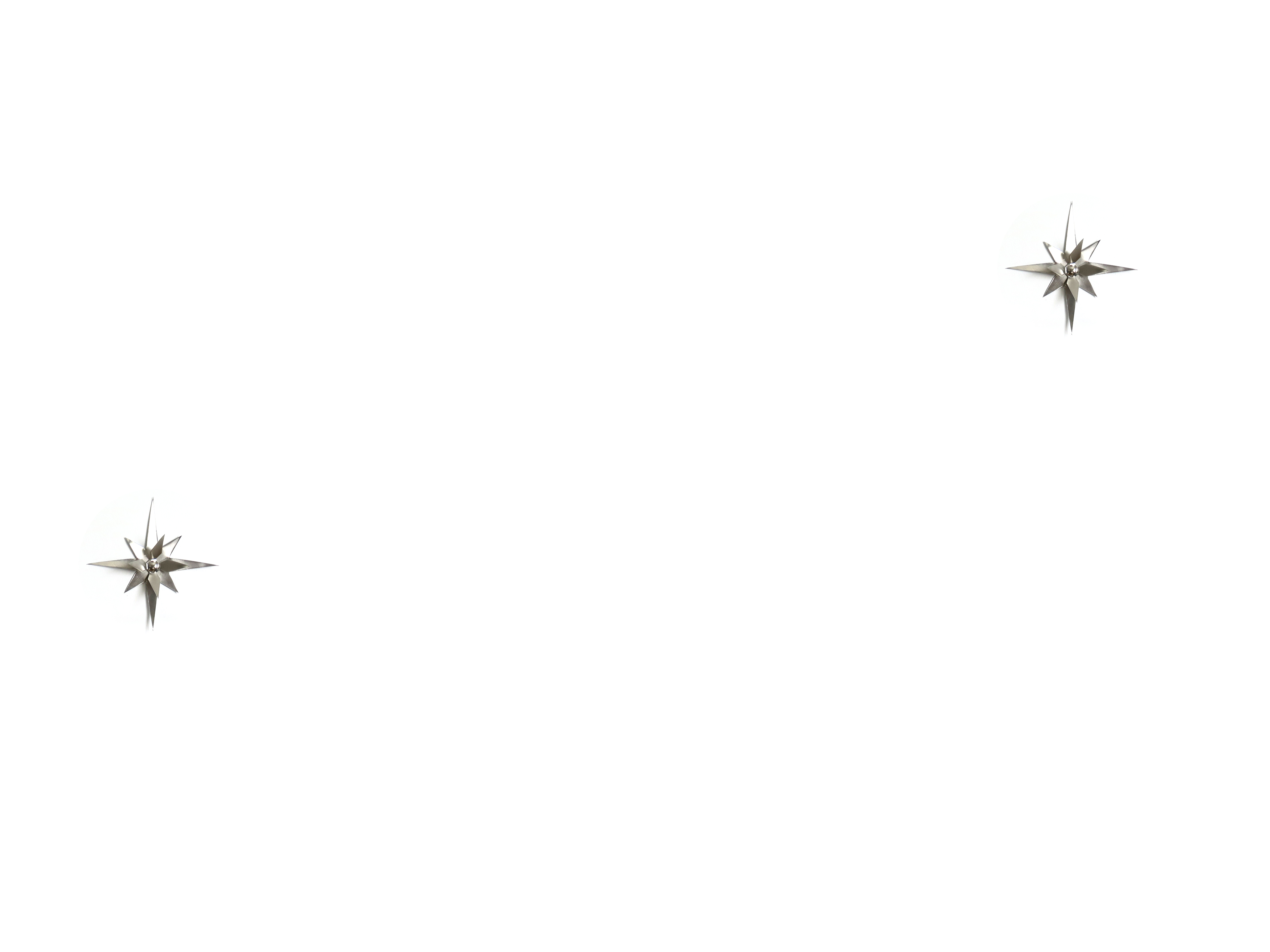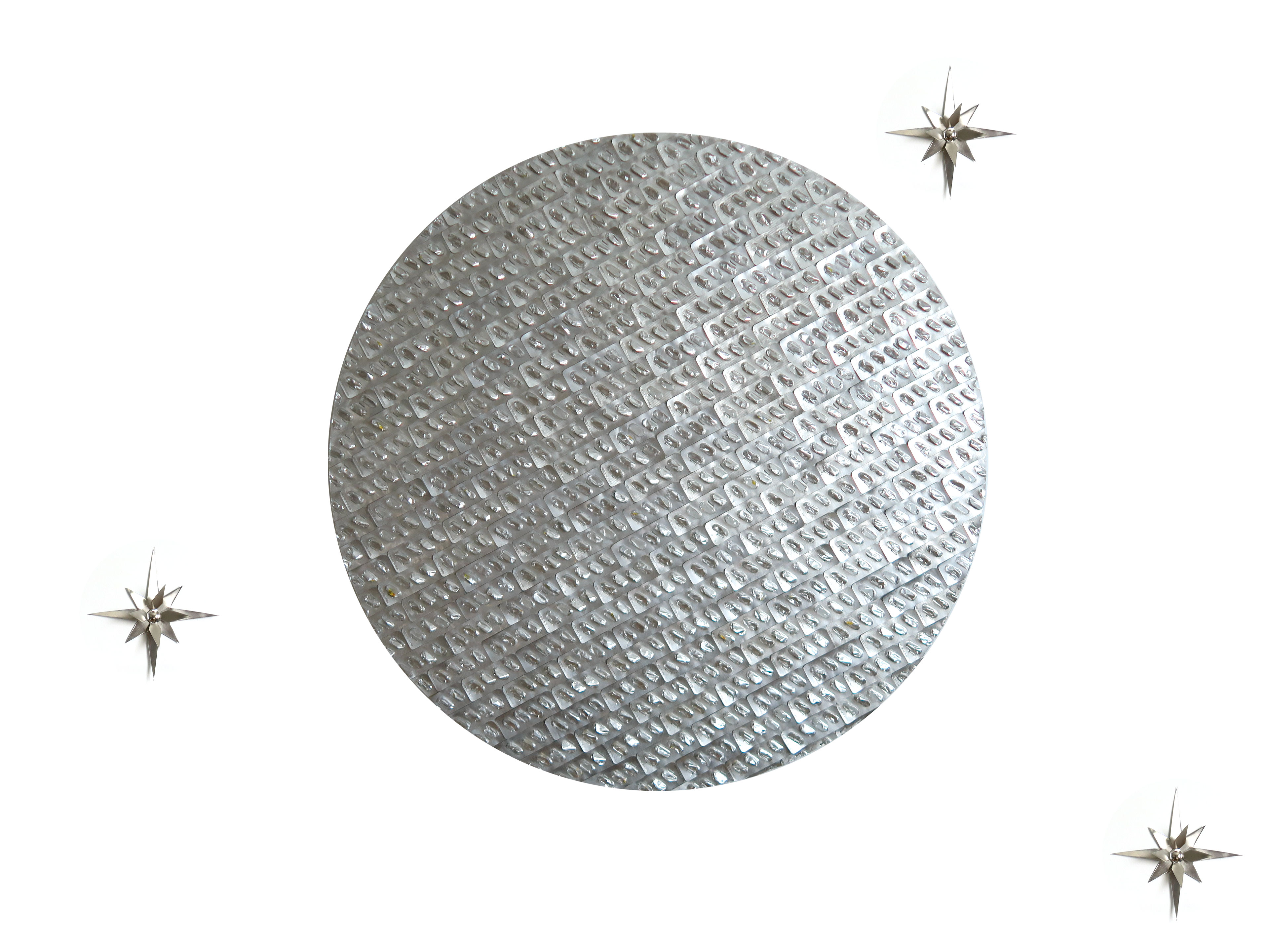 Série Sous le ciel étoilé – multiple de 6 exemplaires. Assemblage de 2 plaques d’aluminium découpées, clou de tapissier diamètre 18mm L 21 x H 21 x P 3,5 cm